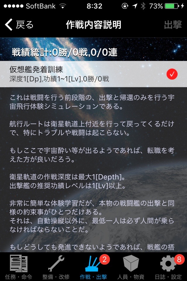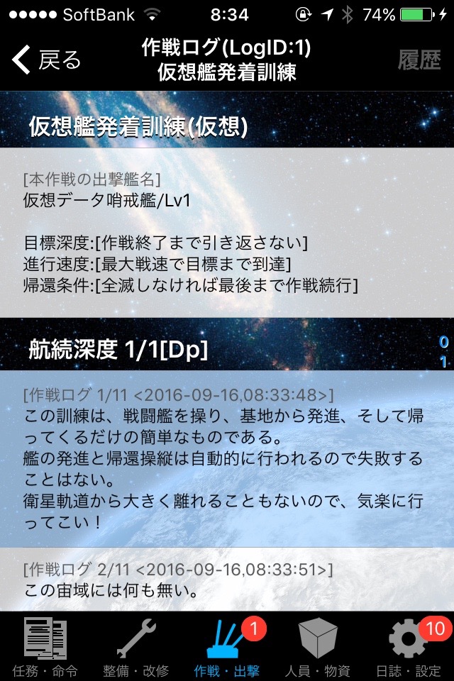 ここで作戦内容の説明を読み、戦艦を選んで出撃ボタンを押せばプレーヤーのすることはほぼ終わりです。あとは艦が帰還してくるのを待つだけ…