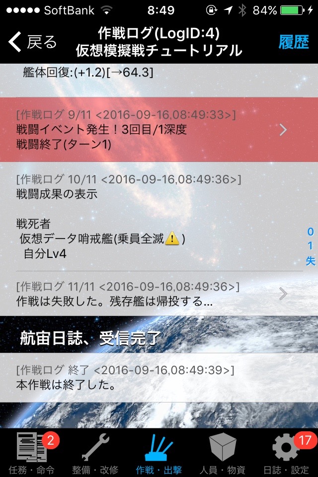 負けてからが本番になります。日誌は膨大になりますが、その中から負けの原因を突き止め、それを補う作戦を考え、装備や乗員を采配してください。ログ内検索システムを備えていますので、役に立つと思います。