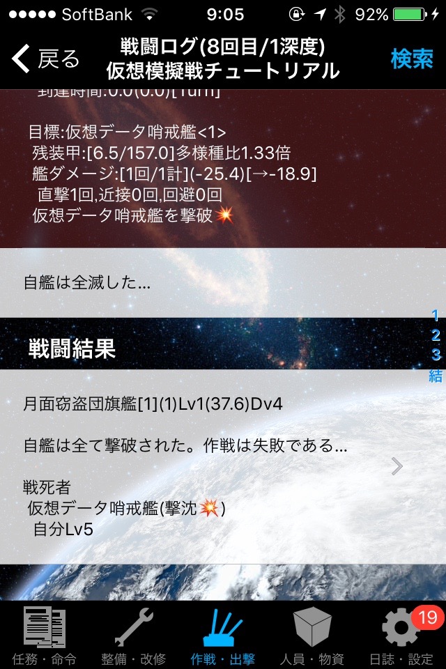 負けてからが本番になります。日誌は膨大になりますが、その中から負けの原因を突き止め、それを補う作戦を考え、装備や乗員を采配してください。ログ内検索システムを備えていますので、役に立つと思います。